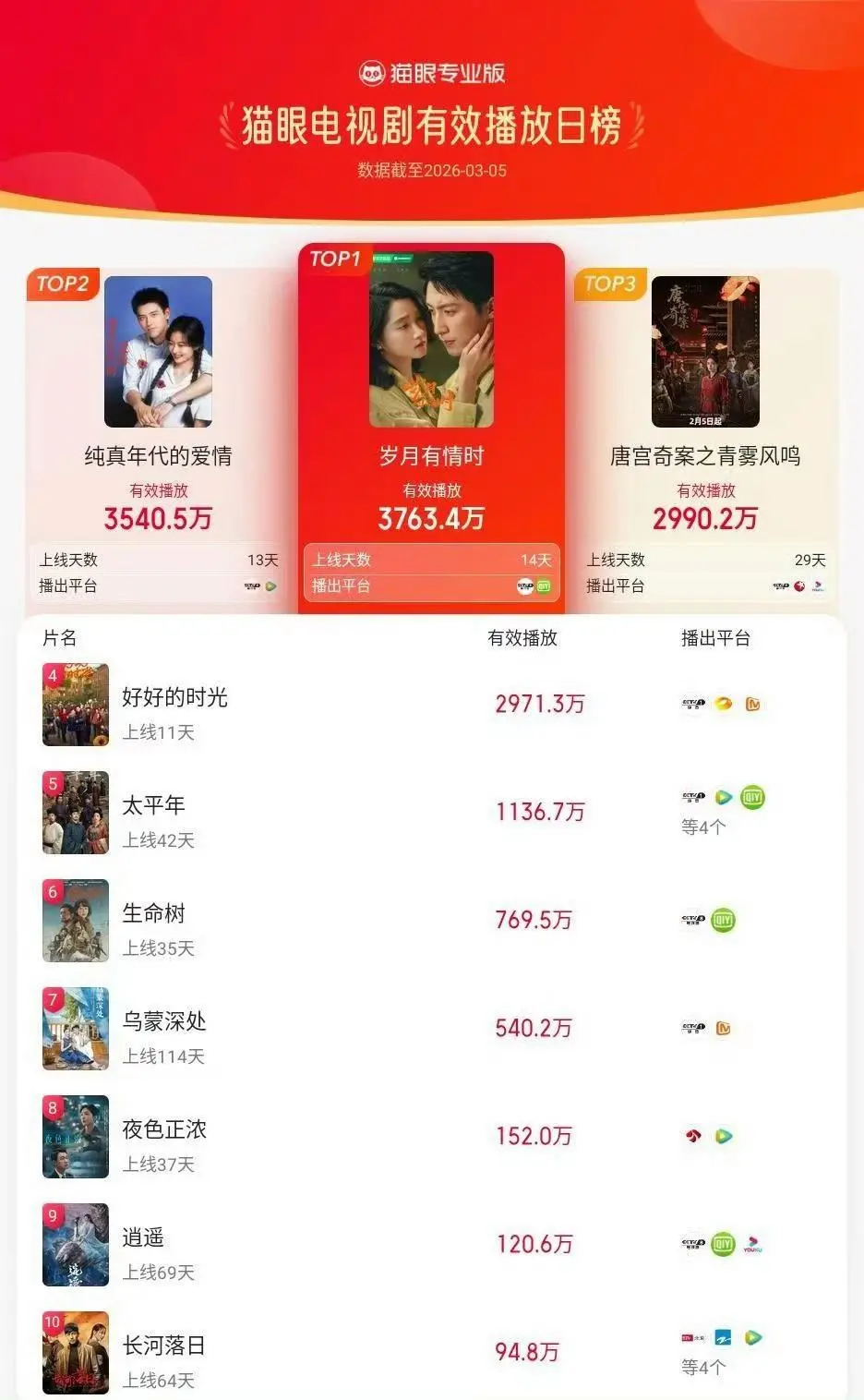 《岁月有情时》的成功,不仅是演员与角色的相互成就,也是对当下浮躁市场的一次“温情回应”。在短剧横流、追求“爽感”的今天,这部作品依然坚守着长剧的初心,在自己的内容生态里,做好深度叙事与价值共鸣,用精良的制作还原了90年代东北老厂区的质感和邻里之间最淳朴的真情,用充满人情味的笔触,书写了在经济浪潮下青年群体的命运抉择与情感羁绊——有人留守故土守护根脉,有人奔赴远方追寻可能,每一种选择都在岁月的洗礼下显出合理性。这部剧取得的良好口碑,也印证了市场需要这样的走心长剧,它让我们在快节奏的生活中,依然能静下来,读懂平凡生活里的温情与感动。